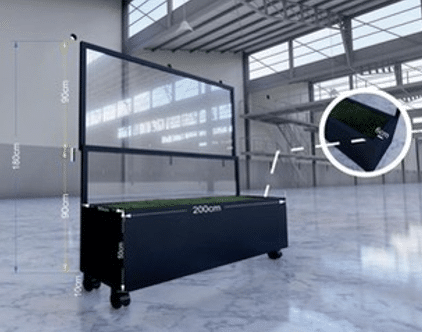 - Standardmaß des Pflanzkastens: 200 × 50 × 50 cm (BxTxH), mit Feststellrollen.